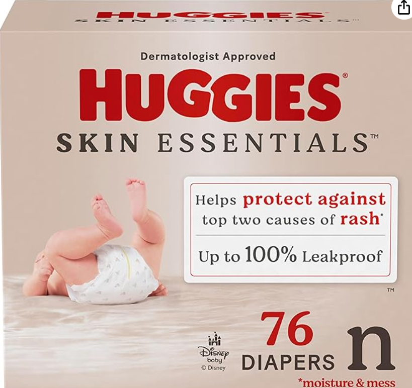 Huggies Size Newborn Diapers, Skin Essentials Baby Diapers, Size Newborn (6-9 lbs), 76 Count, Packaging May Vary