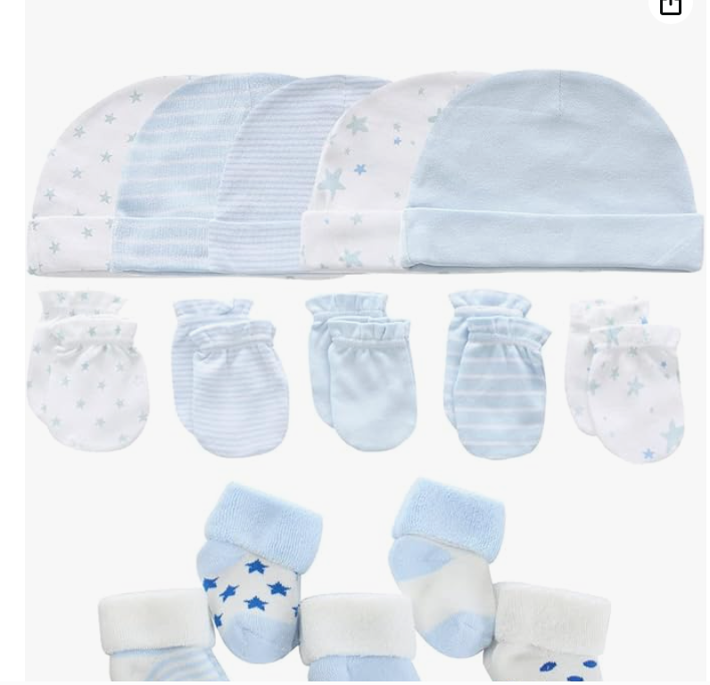 Newborn Baby Boy Girl Caps Mittens Socks Set Cotton Baby Essentials Accessories (Hats+Gloves+Socks)