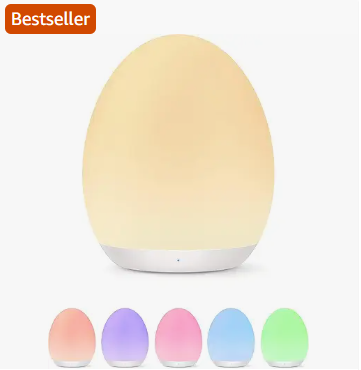 MediAcous Night Light for Kids, Baby Egg Light for Nursery, 7 Colors Changing & Stepless Dimming, Soft Silicone Touch Night Lamp with 1 Hour Timer, Rechargeable Nursery Night for Breastfeeding
