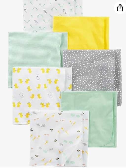 Simple Joys by Carter’s Baby Unisex 7-Pack Flannel Receiving Blankets, Grey/White/Mint, One Size